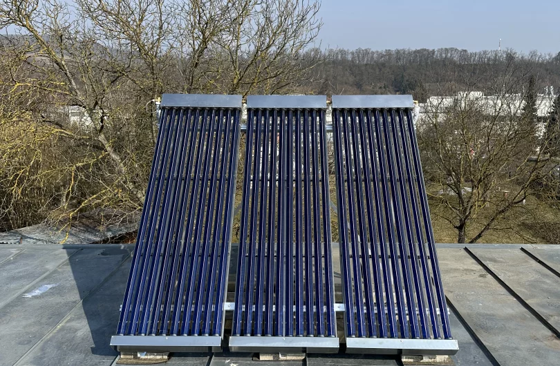 Solární ohřev 300l pomocí 3 vakuových kolektorů.